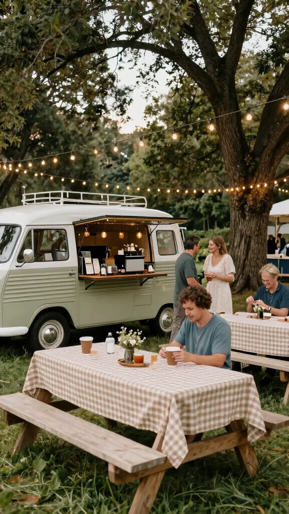Hosting an outdoor wedding? A coffee station set against a natural backdrop creates a charming experience! Think picnic-style with checkered tablecloths or a delightful coffee truck parked nearby. This casual setup encourages guests to grab their drinks while soaking in the beauty of the outdoors.
