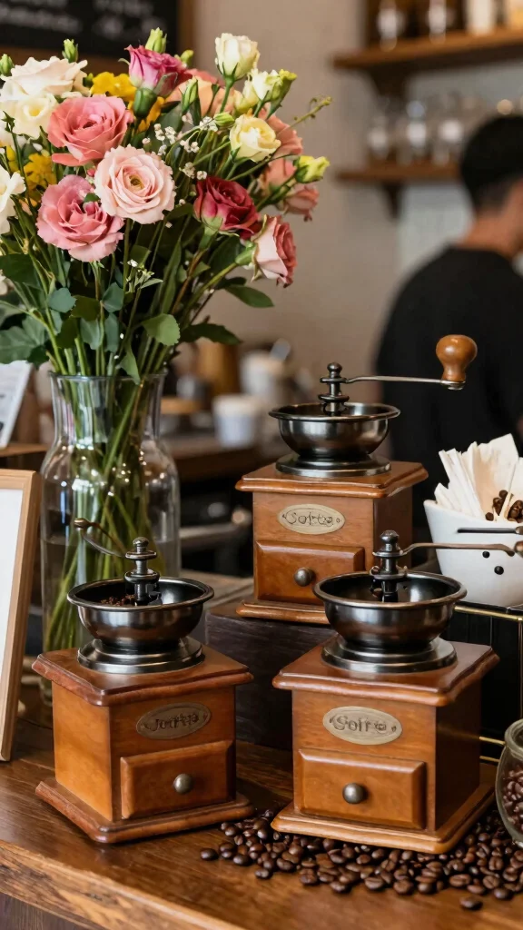 Fun fact: featuring vintage coffee grinders as decor can boost guest photos by up to 40% at a coffee bar wedding. Pair them with fresh flowers and beans to create a cohesive, nostalgic centerpiece guests will remember.