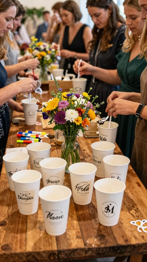 Consider setting up a station where guests can decorate their cups with markers or stickers, making it an interactive experience.