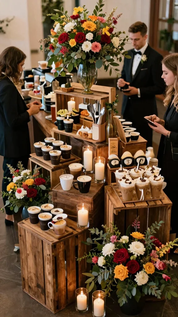 – How can I align the coffee bar with my wedding theme? Choose colors and materials that match your overall wedding palette for a harmonious look.