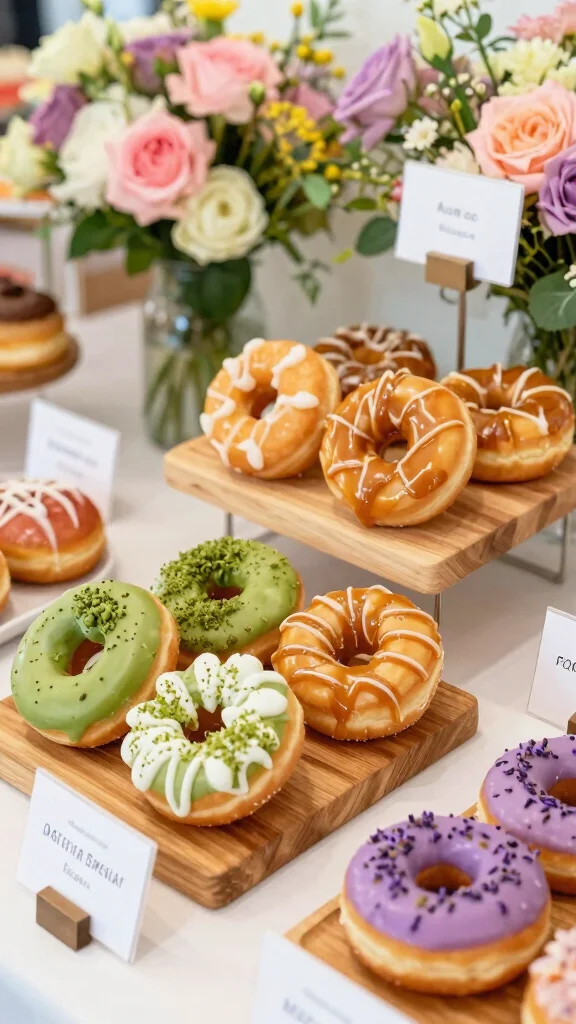This seasonal approach not only enhances flavor but also provides a visually striking display that resonates with the time of year. You can even incorporate seasonal decorations around the donut bar to highlight the theme.
