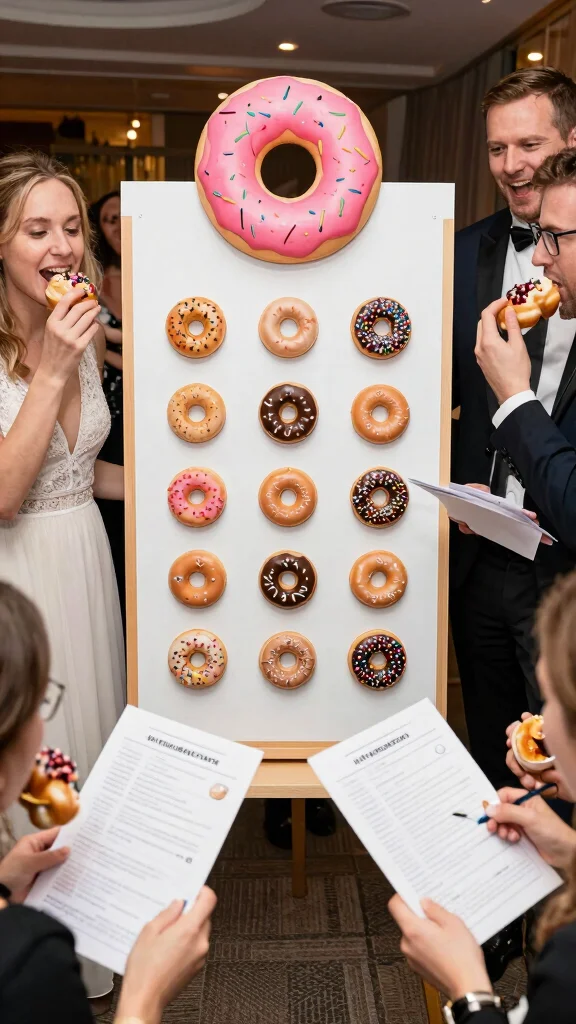 Set up a station where guests can fill out their quizzes while enjoying donuts, keeping the vibe light and enjoyable. Wrap up the quiz with a fun reveal of the winners! It’s a playful way to add another layer of enjoyment to your wedding.