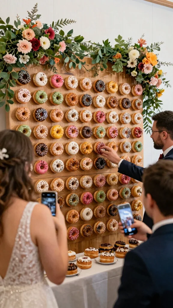Incorporate fun elements, like donut stands featuring quirky designs or colors that align with your wedding theme. The more visually appealing your setup is, the more likely guests will want to take photos and enjoy the experience!