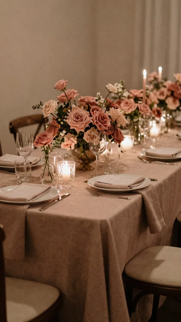 Absolutely. Seasonal adjustments keep the dusty rose feel fresh year-round. In spring and summer, pair with ivory, sage, and pale pink for a light, airy vibe. In autumn, blend with warm olive, cinnamon, and bronze for a cozy boho look. In winter, add emerald greens or navy accents with soft metallics to deepen the palette while staying romantic. These tweaks help maintain dusty rose wedding colors as part of romantic wedding color schemes through every season.