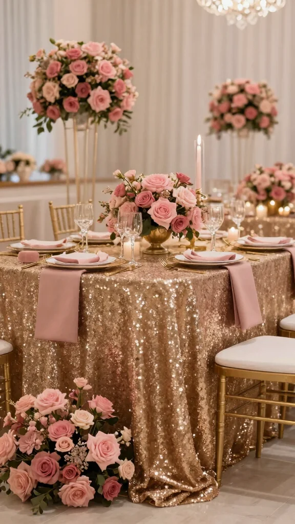 This combination creates a glamorous and romantic atmosphere, perfect for couples wanting to add a luxurious touch to their celebrations.