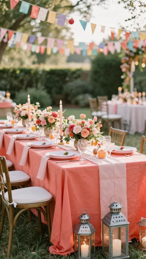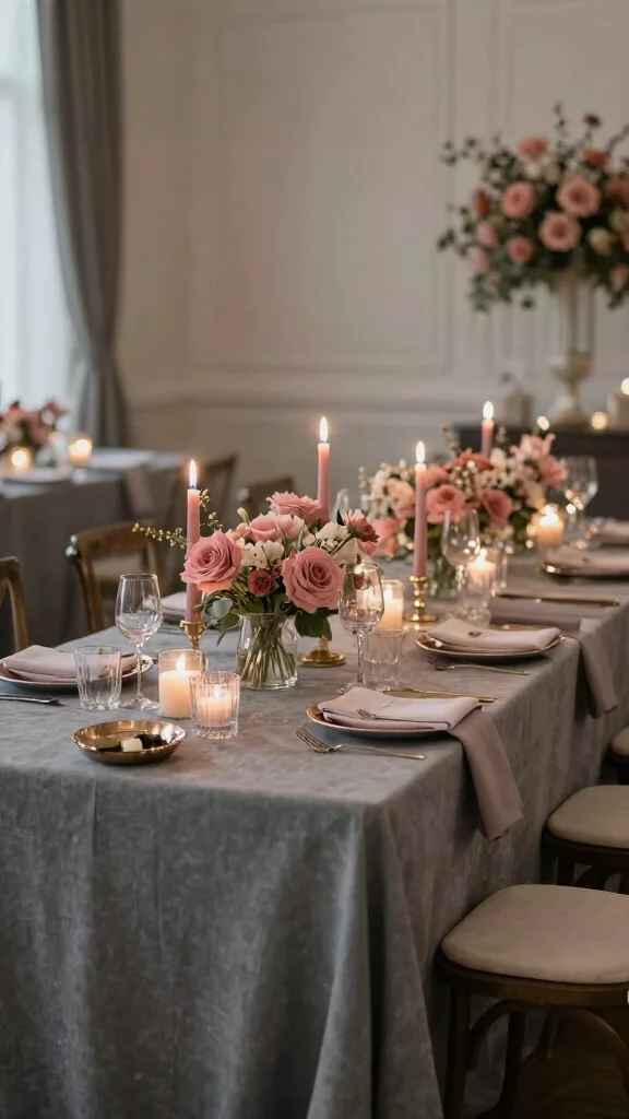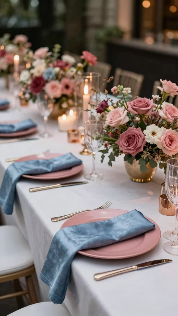 Mixing these colors fosters an atmosphere of serenity and love, perfect for intimate gatherings filled with romance.