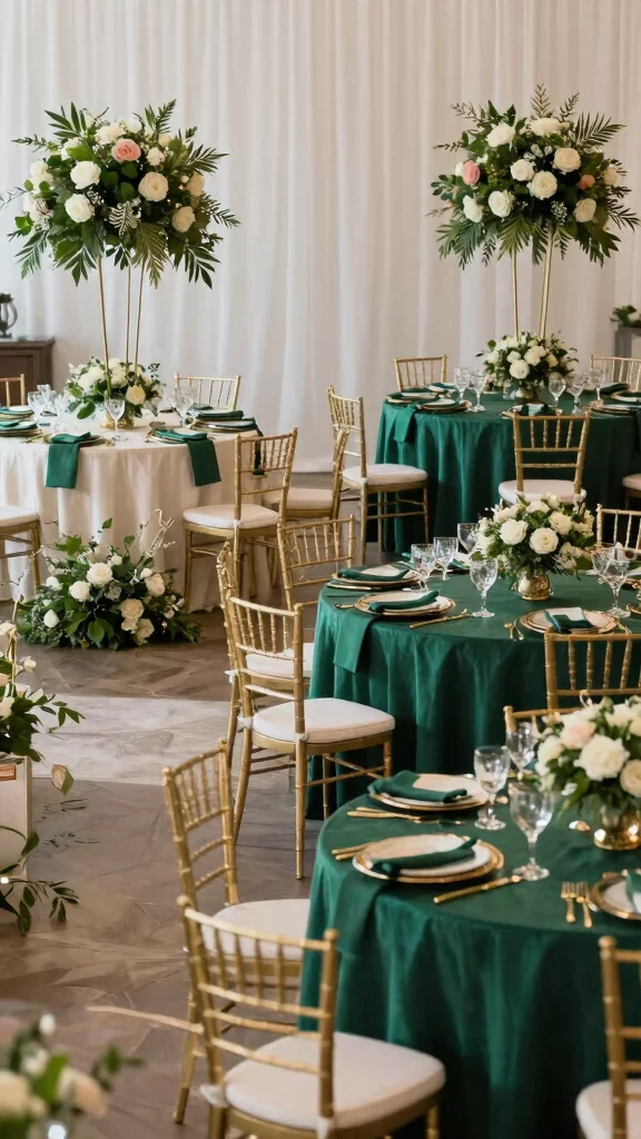 Pair emerald with gold for a classic elegance that elevates the overall glamour of your wedding decor.