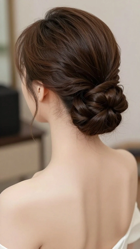 – Elegant chignon (secure with bobby pins)