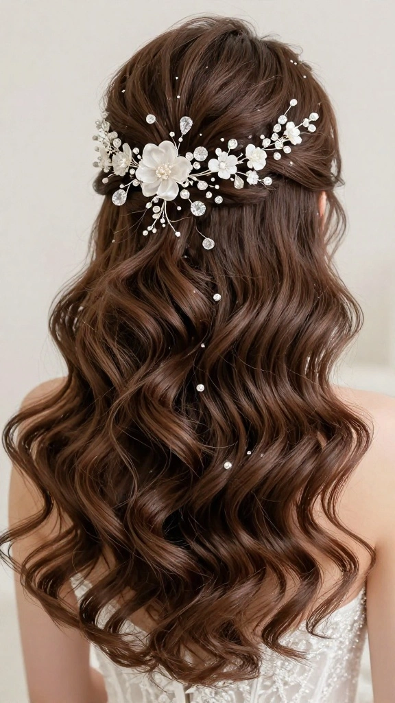 – Statement hairpiece (with crystals or flowers)