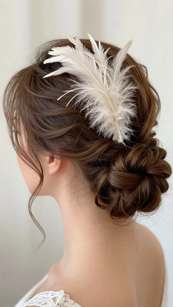 Try a chic updo paired with a feather fascinator for an elevated bridal hairstyle that exudes sophistication.
