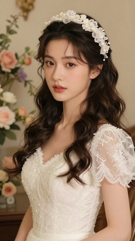 – Floral crown (seasonal blooms like peonies or wildflowers)