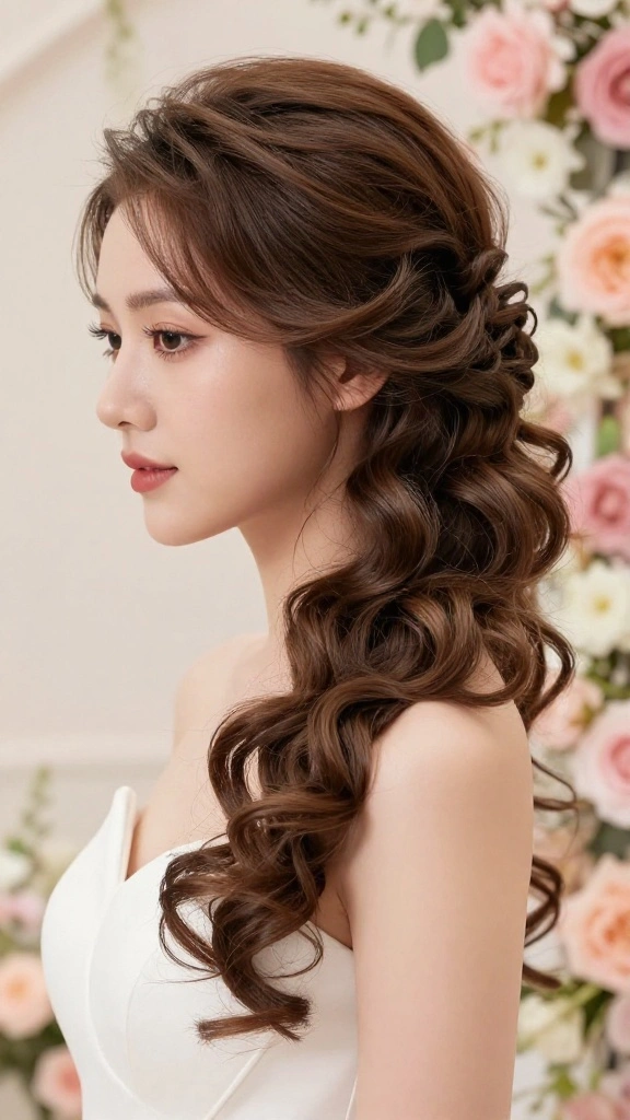 Accessorize with delicate hairpins or flowers for a truly enchanting finish. This hairstyle beautifully frames your face, creating a soft, romantic look that is perfect for weddings of any theme.
