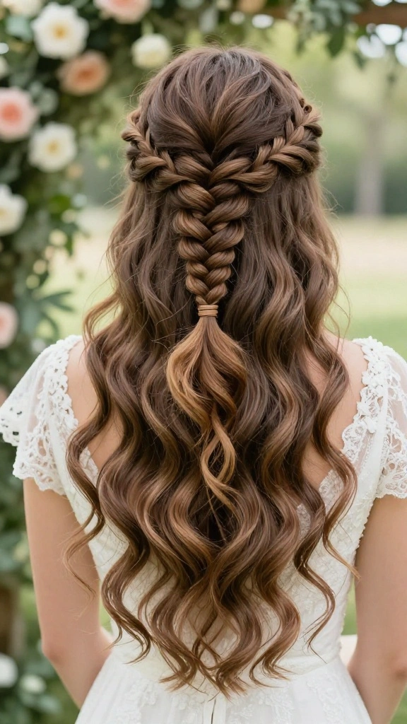 This hairstyle works beautifully for outdoor ceremonies, giving a fairy-tale vibe. Pair it with floral hair accessories for a romantic touch, making it a perfect choice for any dreamy wedding.