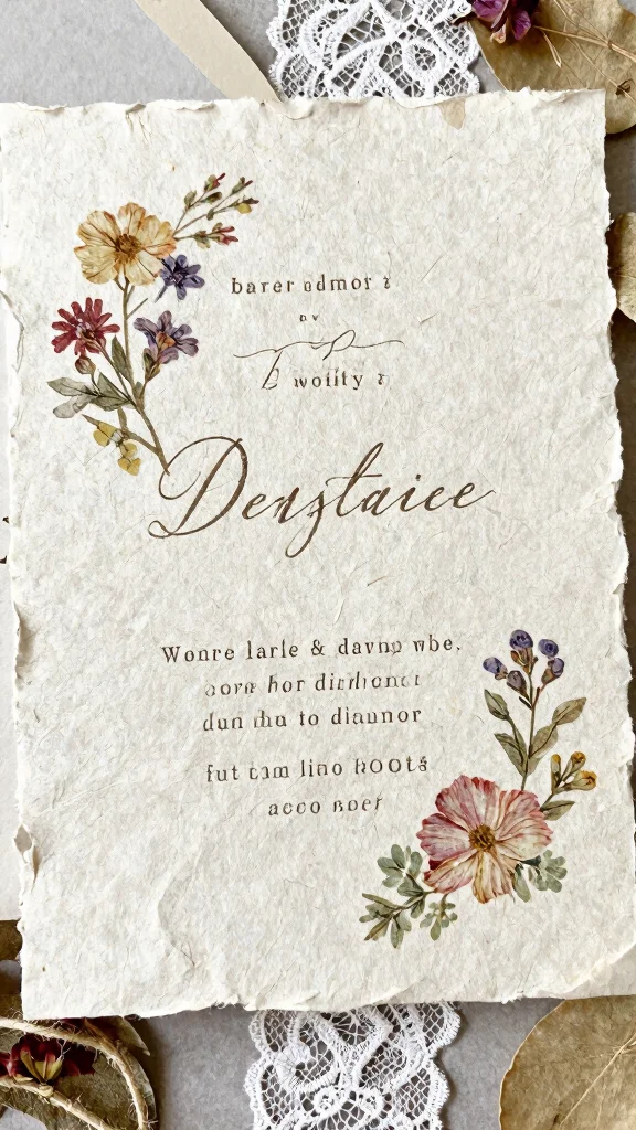 Embrace the beauty of imperfection with handmade paper invitations that exude rustic charm. Each piece often showcases unique textures, fibers, or floral inclusions, making every invitation a work of art. This design can be elevated with natural dyes, creating a truly eco-friendly option.