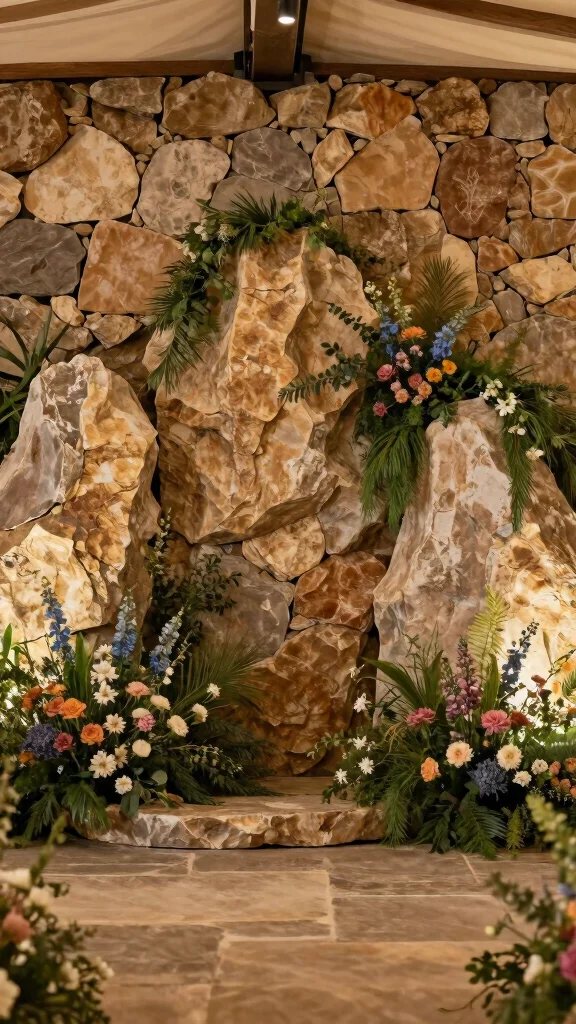 Incorporating natural stones into your wedding backdrop adds an earthy and rustic vibe that resonates with nature enthusiasts. Whether using large rock formations or smaller decorative stones, these elements create unique focal points.
