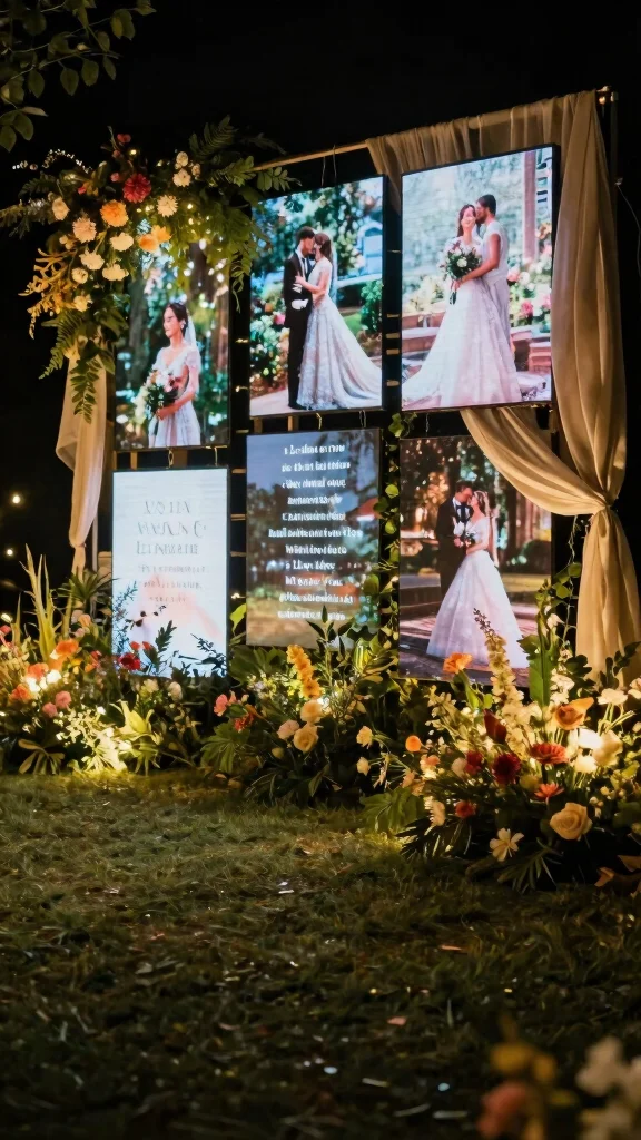 This type of backdrop serves not only as a stunning visual but also engages guests with your love story, making it a memorable part of your celebration.