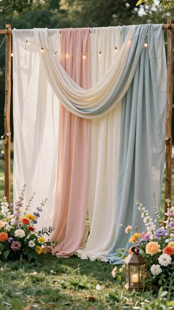 Select colors that resonate with your theme and layer different textures to create an eye-catching visual. Consider hanging the fabric from reclaimed wood or bamboo for a rustic feel that enhances your decor.