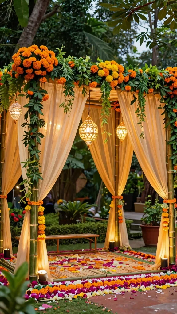 A mandap is essential to Indian wedding ceremonies, but it can also be eco-friendly. Construct yours using bamboo or recycled materials, adorned with vibrant flowers and lush greenery. This traditional setup honors customs while making a bold sustainable statement that guests will admire.