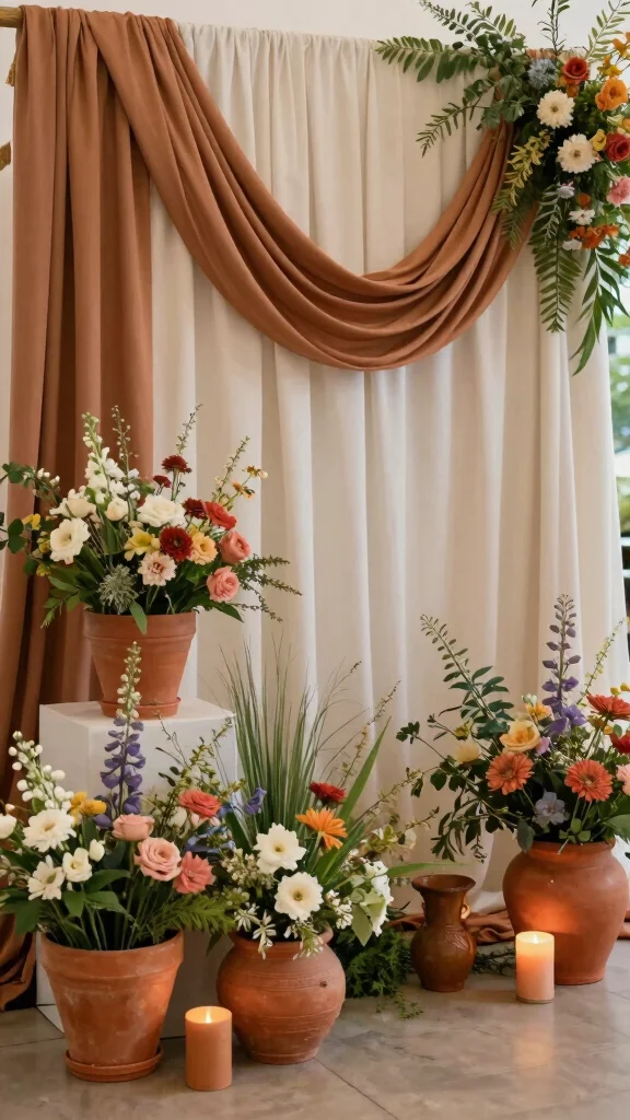 Arrange terracotta accents throughout your venue to create a cohesive look that ties nature into your decor. Pair these pots with soft fabrics in earthy tones for an enhanced aesthetic.