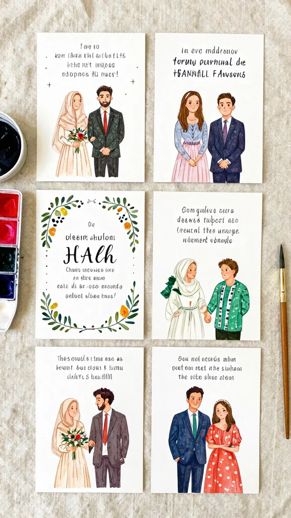 ❝ Fun fact: 68% of couples who use personalized artistic illustrations on their muslim wedding invitation background say guests remember the invitation long after RSVPs. Hand-drawn sketches or digital paintings can beautifully narrate your love story and reflect your personalities.