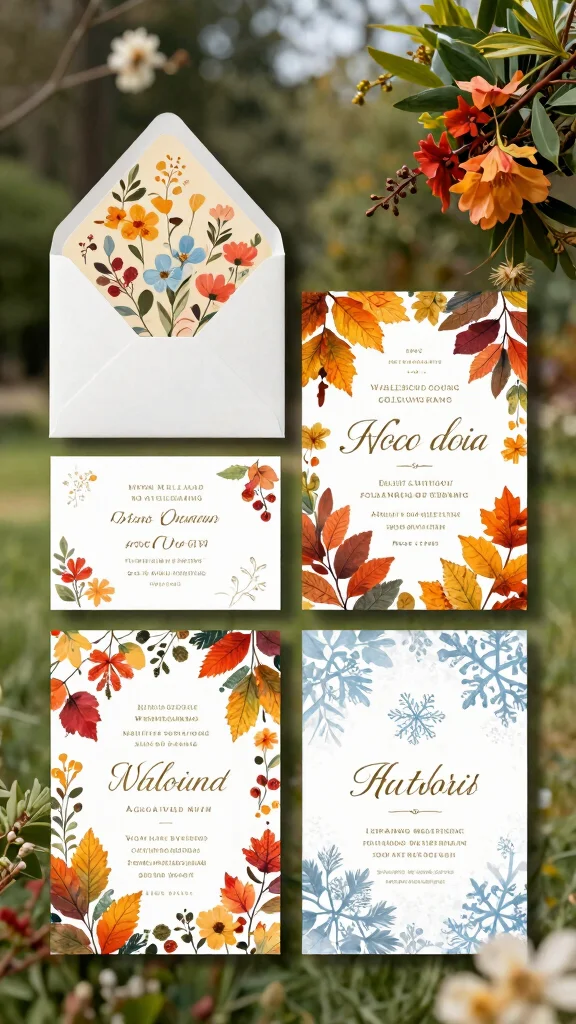 Choose color palettes that reflect the season, enhancing the overall mood. This approach allows you to embrace nature’s beauty while crafting memorable and unique invites.