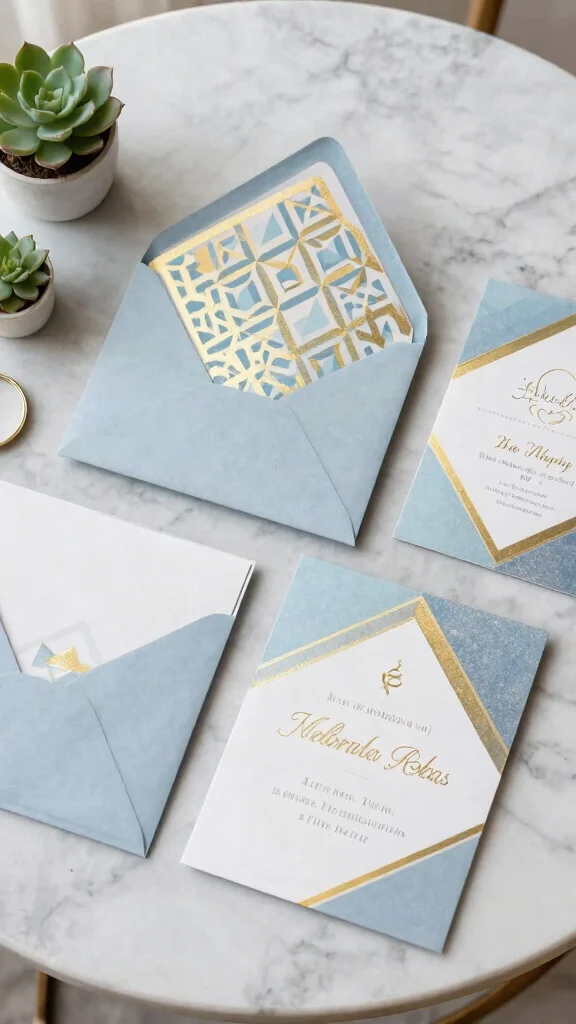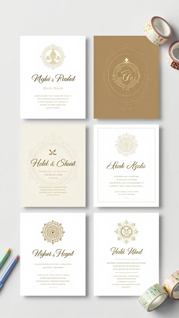 You can incorporate stunning arabesque designs, calligraphy, or mosaic layouts that pair wonderfully with refined typography. Gold or silver accents can elevate the traditional feel, adding a luxurious touch to your invites.