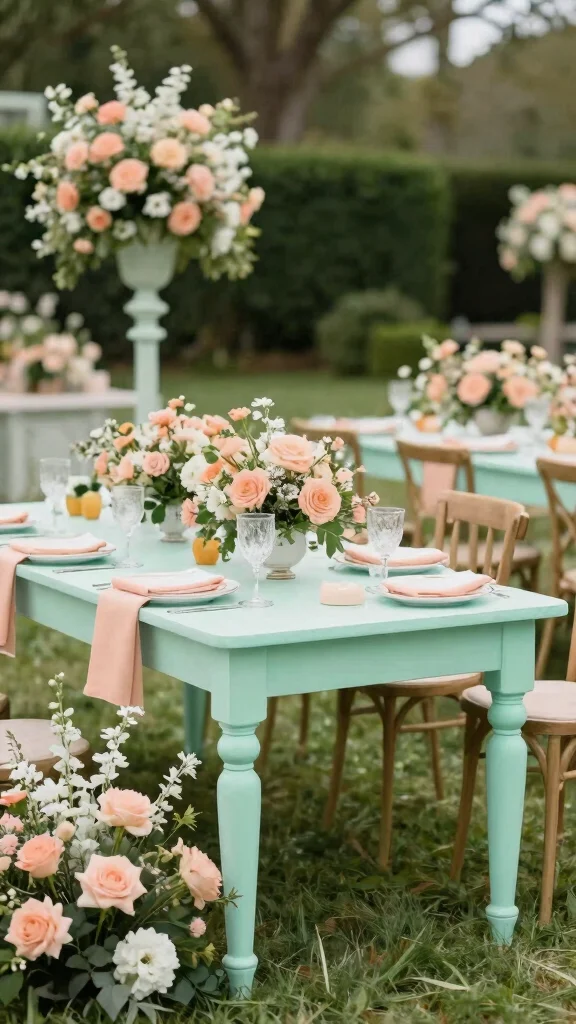 – Use peach and mint as the primary colors throughout the decor.