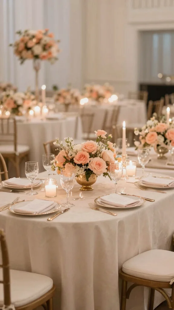 Incorporate elegant peach and gold for a luxurious touch that elevates your wedding theme.