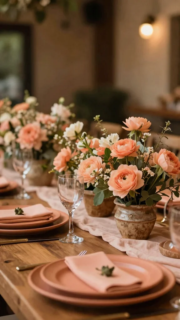 For an earthy vibe, mix peach with terracotta for a warm and inviting rustic feel.