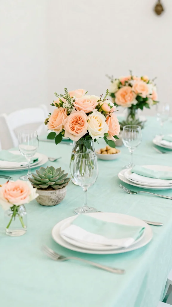 – Create centerpieces featuring peach and mint with succulents for a unique touch