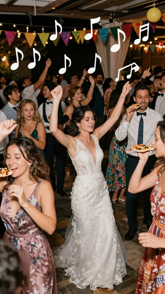 Create a vibrant pizza party playlist that captures the casual vibe of your reception! Music adds energy and encourages guests to let loose and have fun.