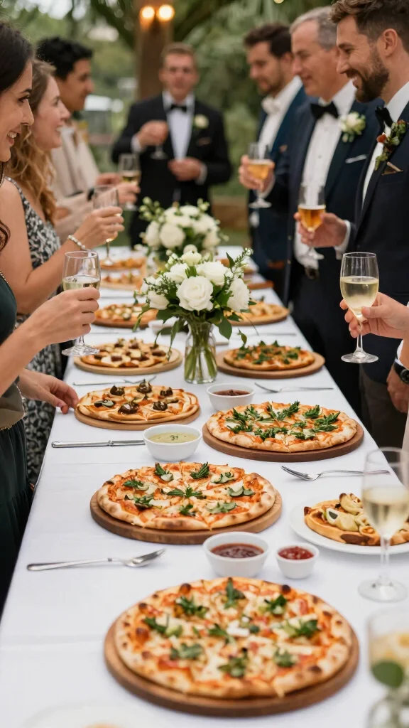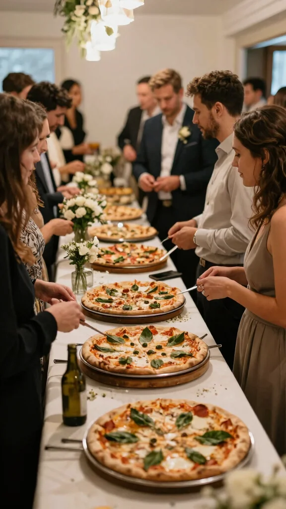 – Interactive Stations: Consider investing in pizza-making stations for guests. This adds a fun element to your reception and keeps everyone engaged.