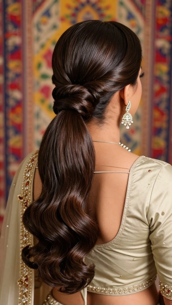 A sleek ponytail is a timeless pick for Indian weddings—the perfect example of pony hairstyles for Indian weddings. When you gather at the nape and hide the elastic, you instantly upgrade any bridal look—from intimate ceremonies to grand celebrations—with calm confidence.