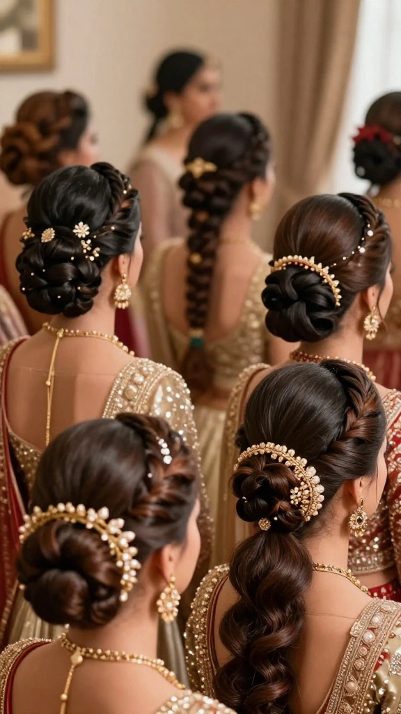 Tip: choose a style that complements your outfit, jewelry, and the vibe of your Indian wedding hairstyles.