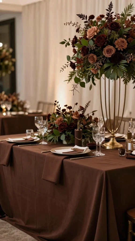 Rich chocolate brown is a grounding color that brings warmth and sophistication to a September wedding. This deep hue complements other autumn colors beautifully, adding a luxurious touch to your decor and attire.