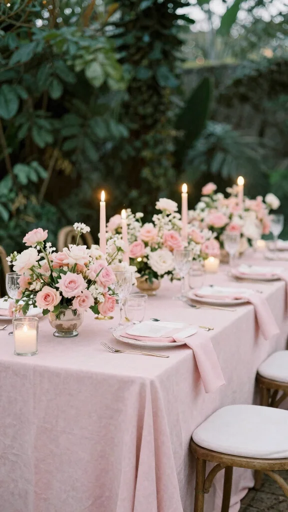 Blush pink pairs wonderfully with gold accents or earthy tones, crafting a romantic ambiance that feels warm and inviting for your celebration.