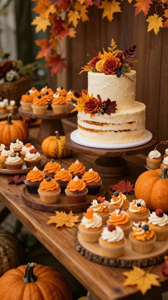 Keep the focus on nature—outdoor ceremony backdrops, greenery garlands, and wooden signage help anchor the fall wedding palette without overpowering the scene.