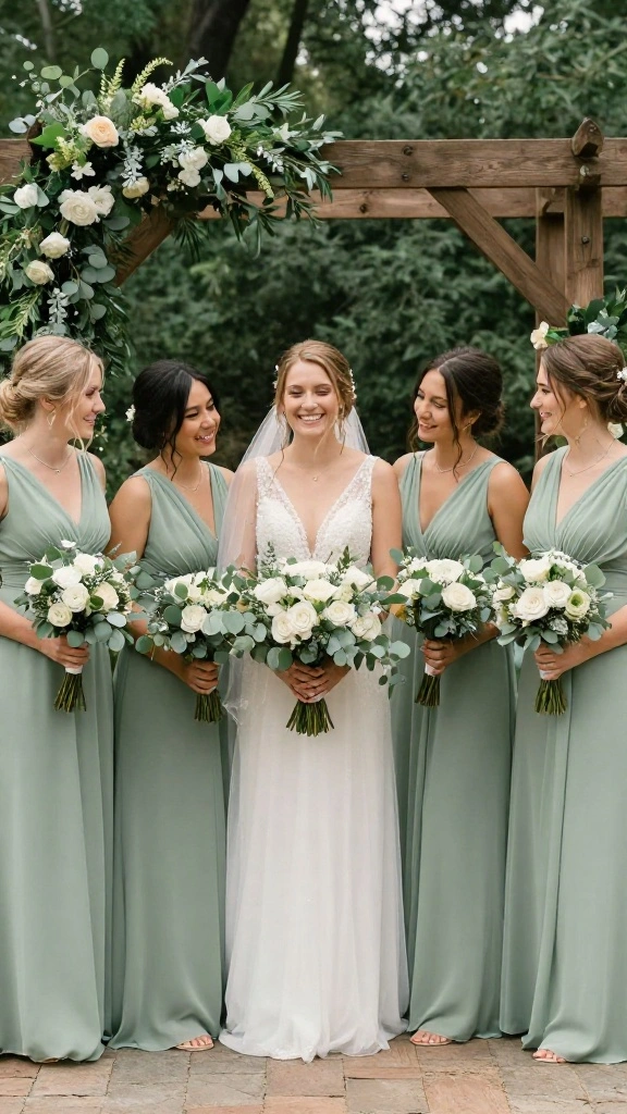 Choose sage green for table linens or bridesmaid dresses for a soft, elegant look that harmonizes with nature.