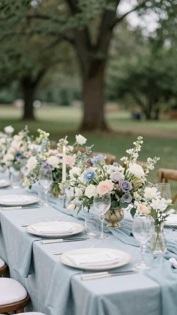 – Creating table decor featuring dusty blue runners or centerpieces