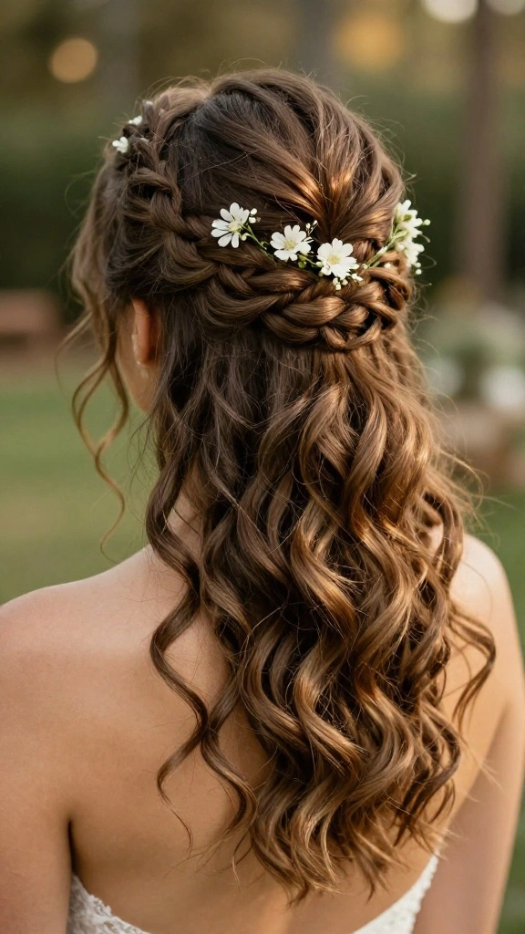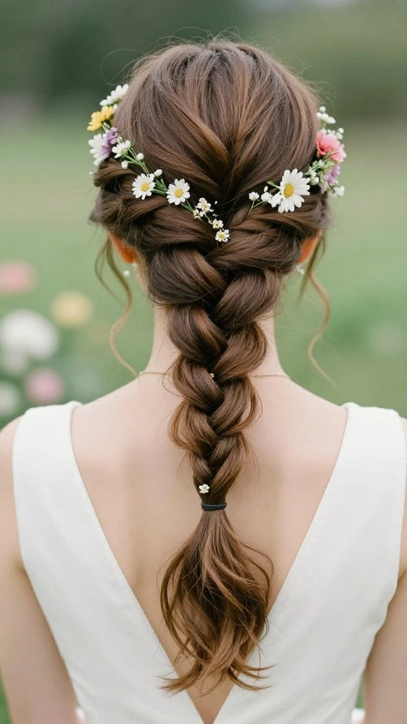 This hairstyle is ideal for spring and summer weddings, adding a fresh, nature-inspired touch to your look.