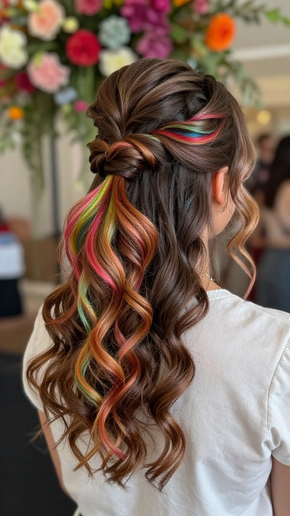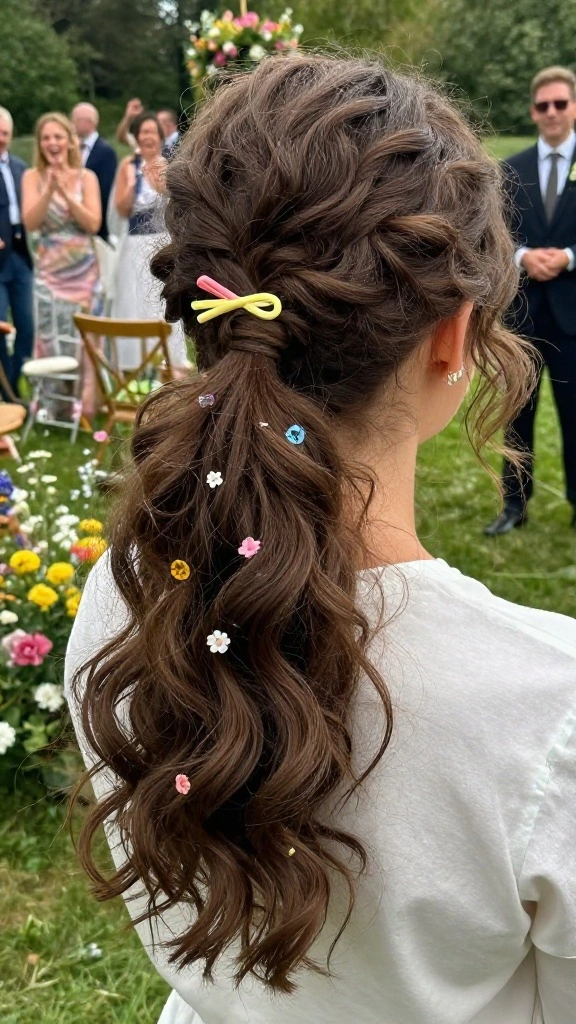 For a bold and unique twist, try an artistic side ponytail featuring colored strands. This playful hairstyle allows for personal expression and is perfect for creative bridesmaids. It adds a fun element to traditional styles, making it an exciting choice for themed weddings.