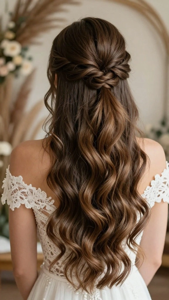 This hairstyle is enchanting and ideal for romantic weddings, especially with the addition of a veil to complete the look.