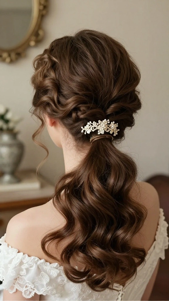 Start with clean hair and apply a light texturizing spray to give grip. Create loose waves with a curling wand, or do soft beachy waves for movement. Decide where to place the pony—slightly higher at the crown or tucked behind the ear—to flatter your face shape. Secure with discreet pins and a covered elastic, then wrap a small strand of hair around the elastic to conceal it. A few delicate pins or a tiny floral accent can elevate it into a formal hairstyles for bridesmaids look. Finish with a flexible hold spray. Perfect for bridesmaids looking for wedding hair ideas that feel elegant wedding hairstyles yet relaxed in a rustic setting.