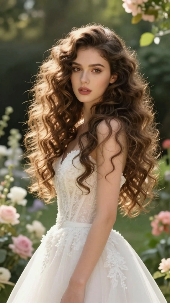 The beauty of these curls lies in their natural appearance and versatility. They work wonderfully with off-the-shoulder or strapless gowns, allowing your hair to frame your face beautifully. Adding floral accessories can elevate the look, enhancing its bohemian charm and making it ideal for outdoor weddings.