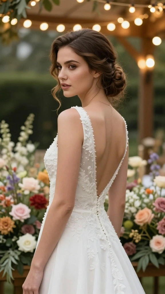 Perfect for a romantic garden wedding or a casual beach ceremony, this style can easily transition from day to night. Pair with statement earrings for a touch of glamour or keep it simple for a more laid-back vibe.