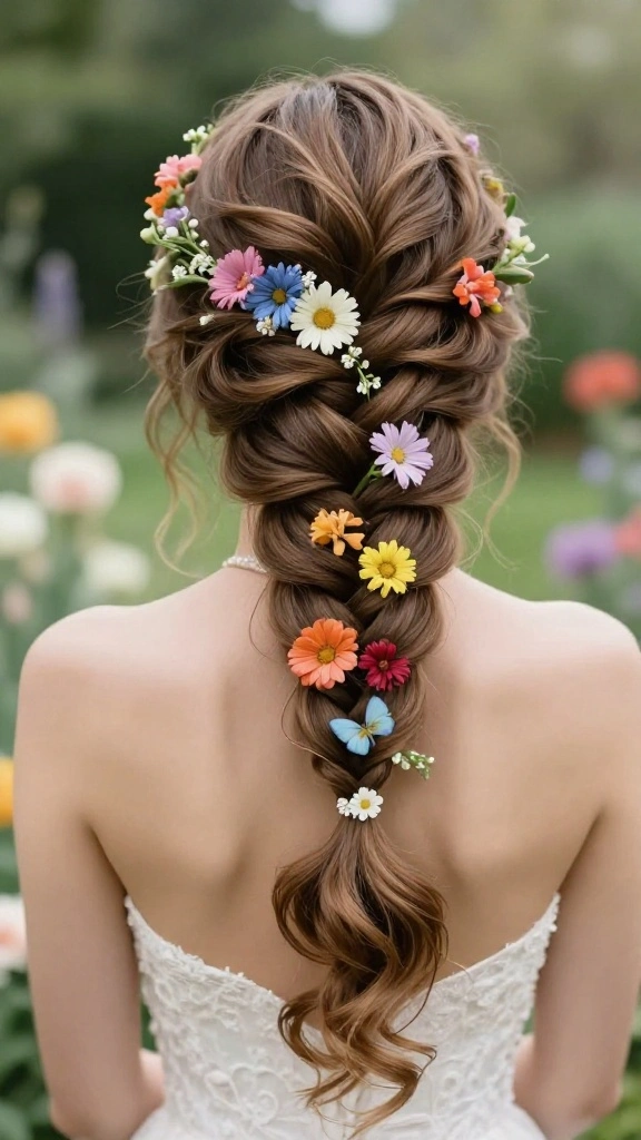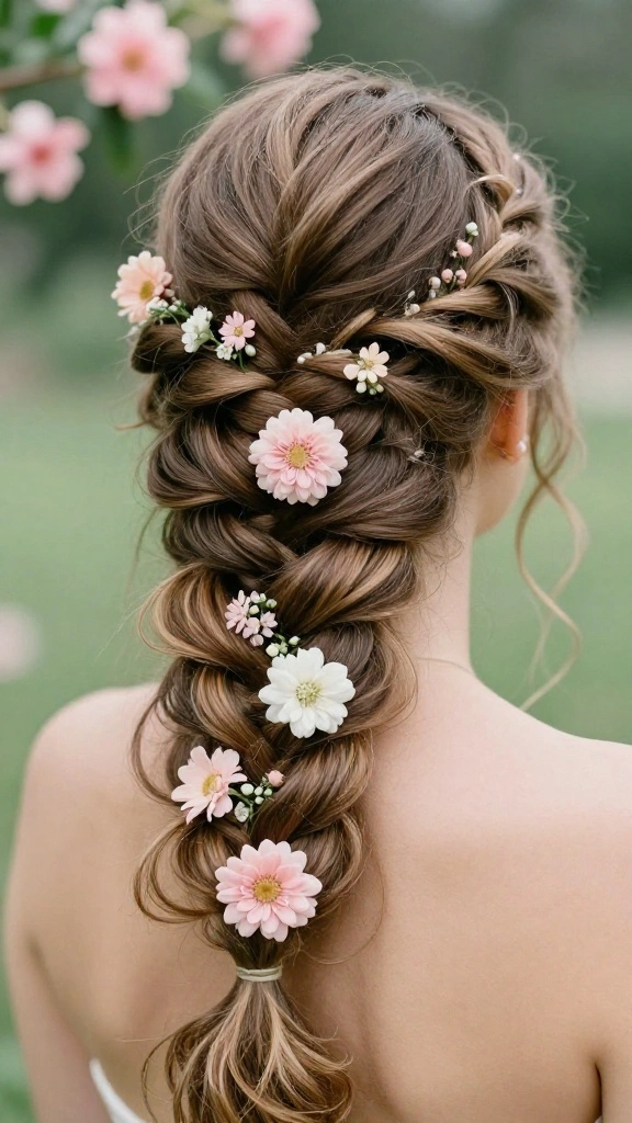 4. Dutch Braid with Floral Accents