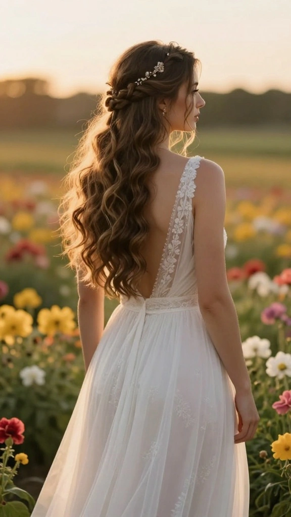 Loose waves enhance the boho feel, lending a soft, romantic appearance that flows beautifully in outdoor settings. Accessorizing with a boho hairpiece or delicate veil can elevate the look even more, complementing various dress types.