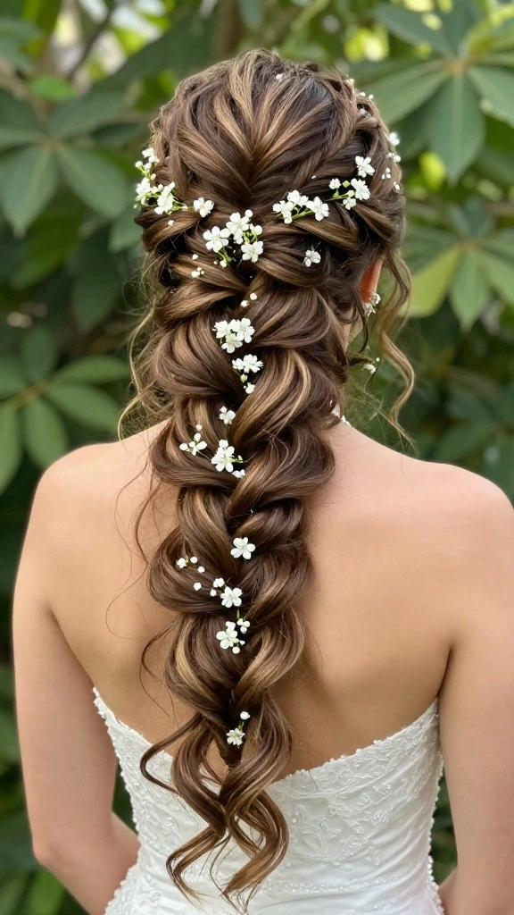 The waterfall braid is a breathtaking choice that adds a romantic flair to any wedding hairstyle. This unique braid gives the illusion of cascading hair, making it perfect for bohemian brides and bridesmaids.